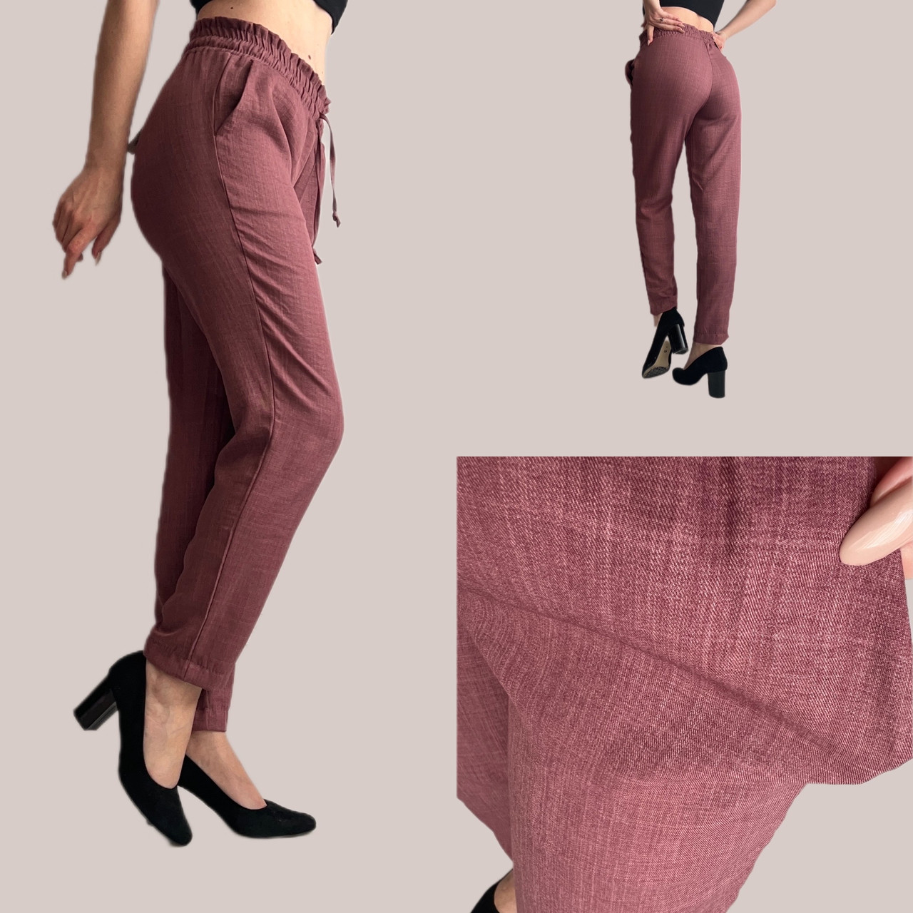 Дна модель штанів ідеально підходит для літа. Брюки-банани виготовлені з якісної тканини - льон-котон. Це м'яка, легка та плотна тканина. В цих штанах вам не буде жарко навіть в самый спекотний день.